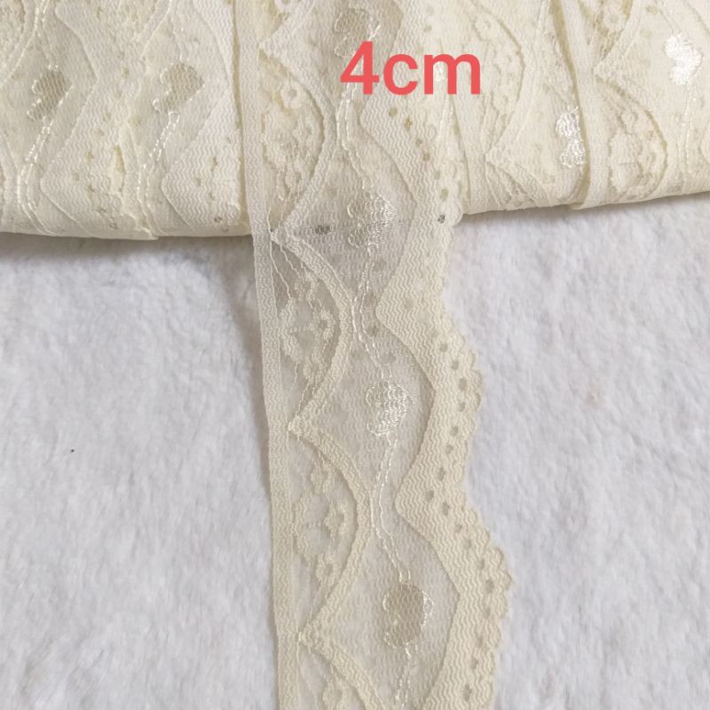 Giới thiệu Ren lưới poly, màu vàng nhạt, size 4cm.(5m/18k)