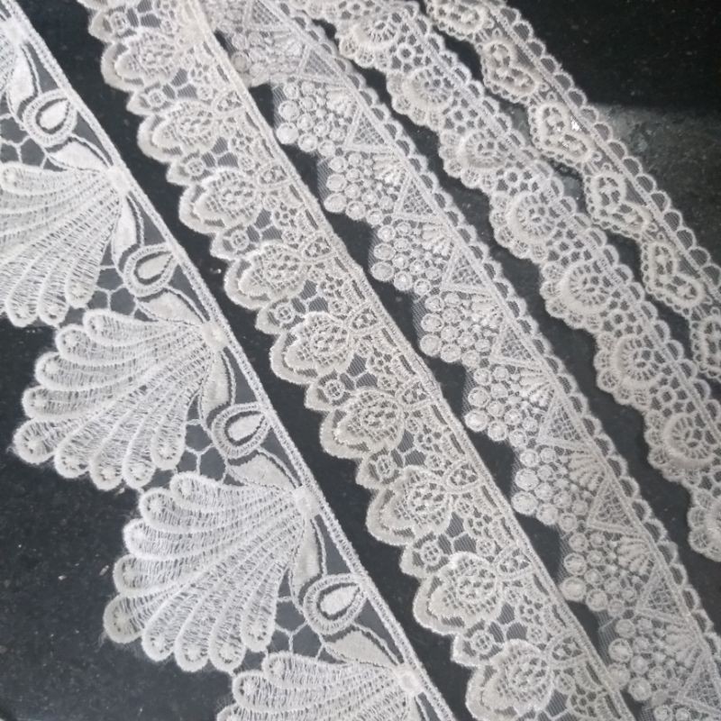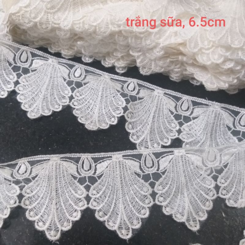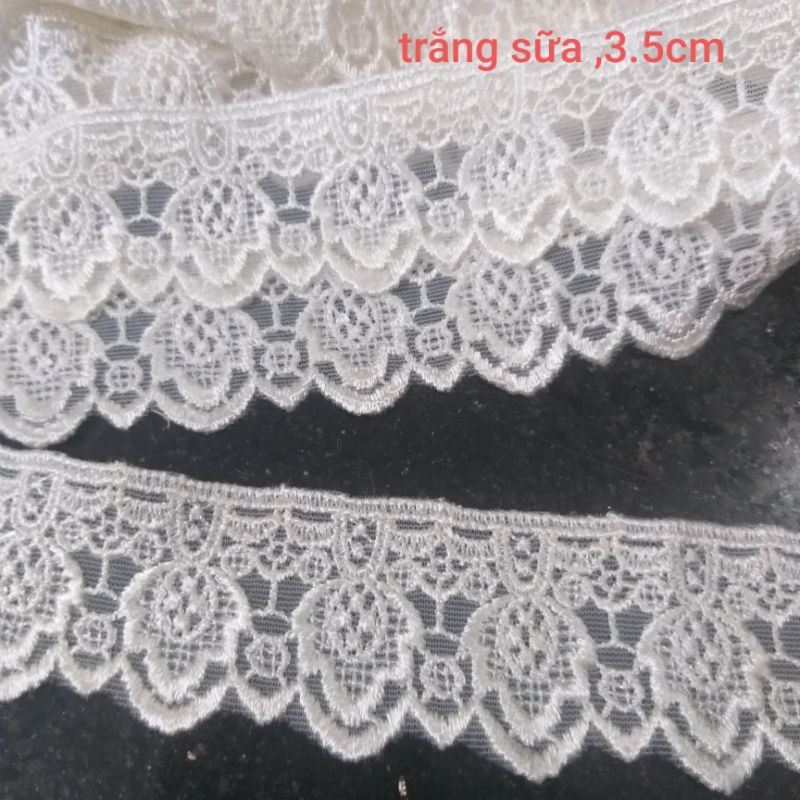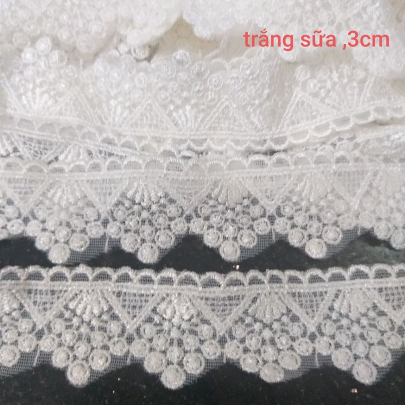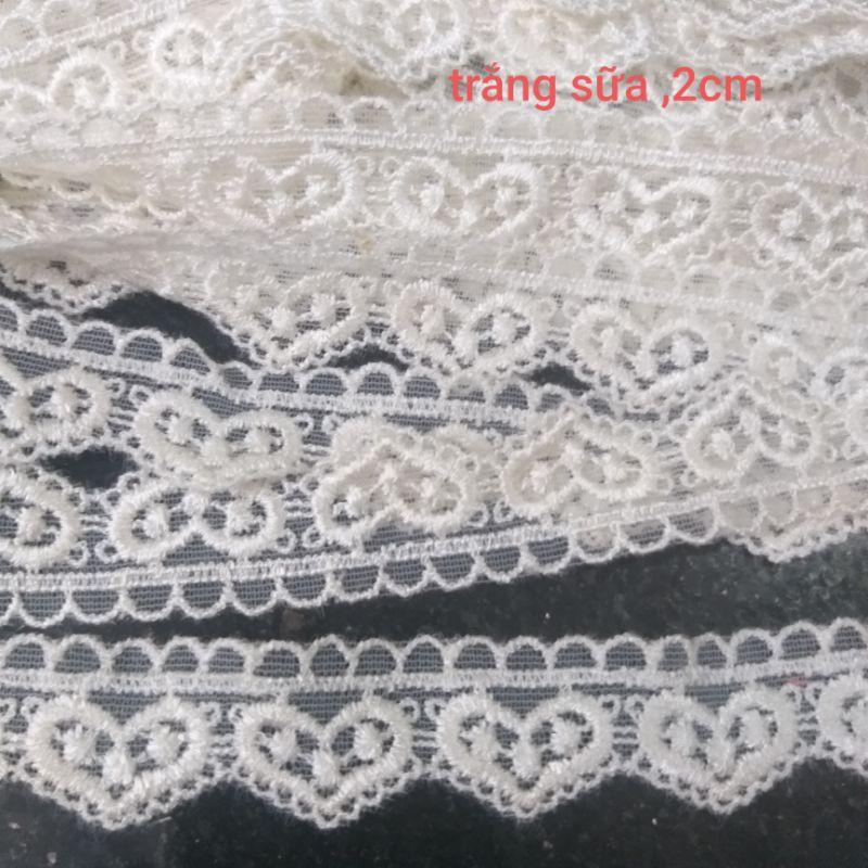 Giới thiệu Ren lưới thêu trang trí , màu trắng sữa, size từ 2_6.5cm (dây 2m)