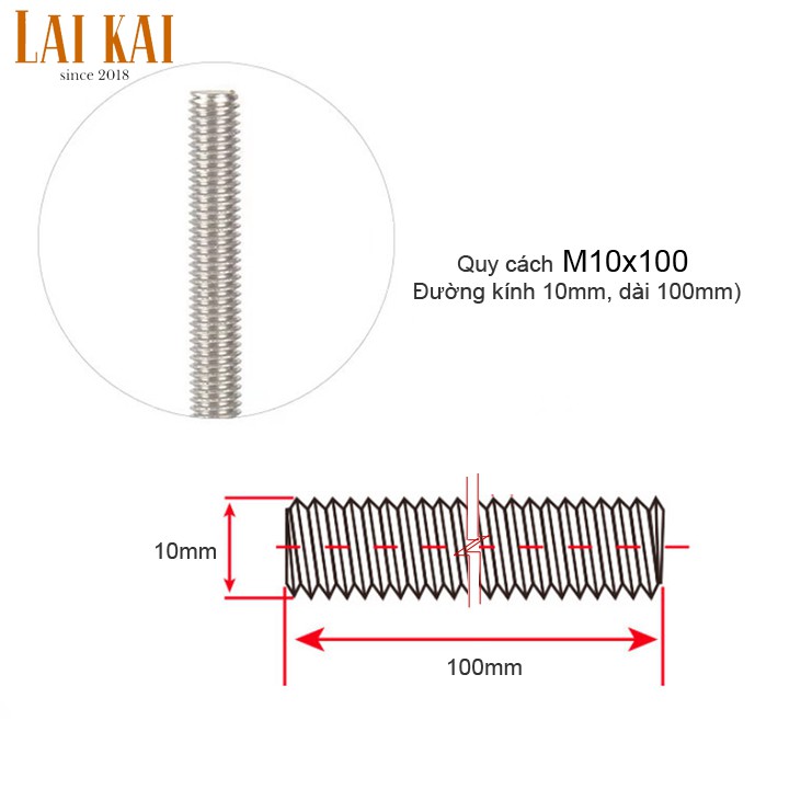 Chất liệu Inox 304Gồm các quy cách lựa chọn là M10x100 hoặc M12x100