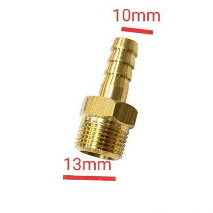 Nối co đuôi chuột ren ngoài 13 đầu ra nối ống 8mm,10mm,- Ren ngoài 13mm