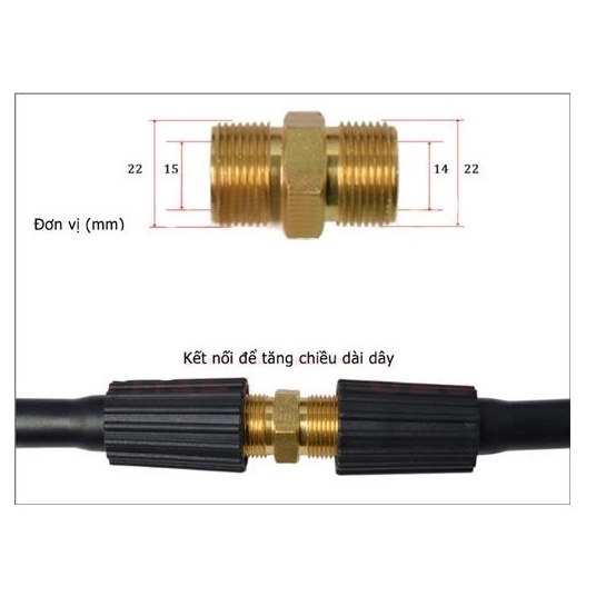 - Đầu nối chuẩn dùng để nối dài các cuộn dây chịu áp dùng cho máy bơm xịt rửa xe áp lực cao.