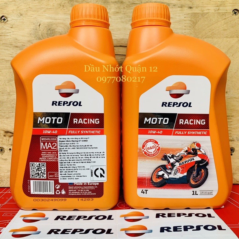 Ô tô > Dầu nhớt và phụ gia ô tô > Mỡ & Chất bôi trơn || Repsol Châu Âu - Repsol Moto Racing 4T 10W-40 Fully Synthetic API SN - Made in SpainCòn hàng