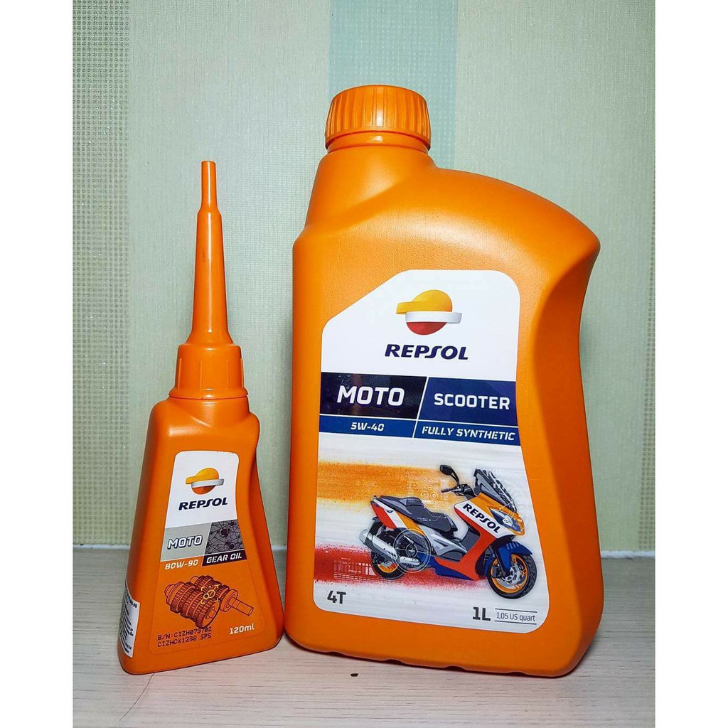 Repsol Scooter 5W40 1L + Nhớt hộp số Repsol Gear Oil 80W90 120ml ( bộ nhớt dùng cho xe tay ga cao cấp tổng hợp)