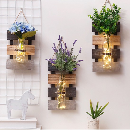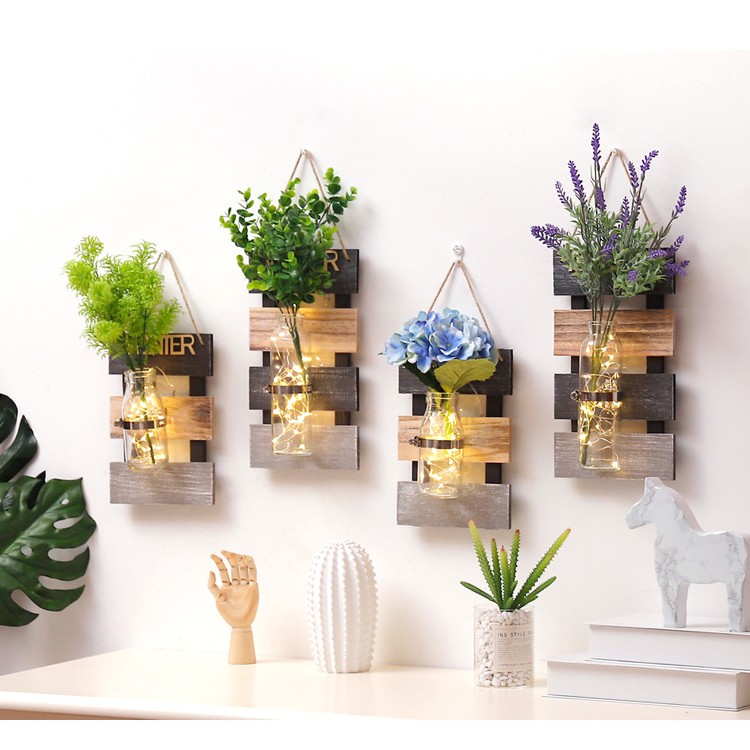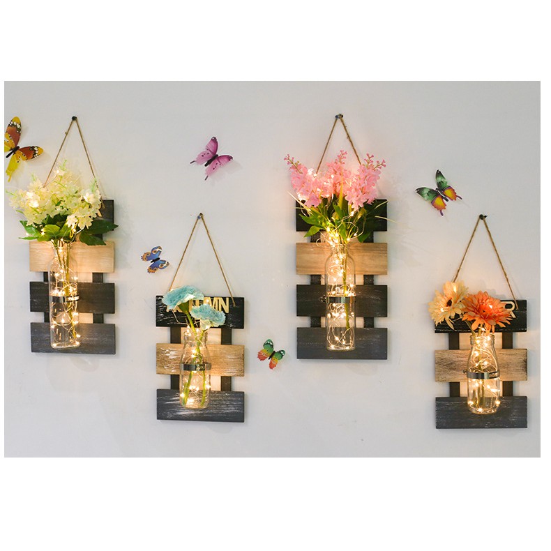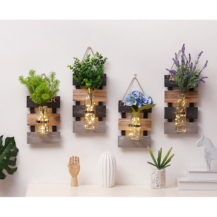 XẢ HÀNG Retro treo tường bằng gỗ và bình thủy tinh đi kèm trang trí theo mùa 4 tầng NCDS0298 ( 4 Tầng )