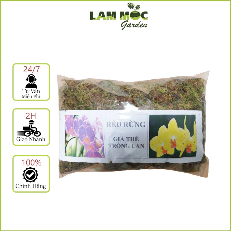 Rêu Rừng Trồng Lan là loại rêu có độ ẩm cao, khả năng giữ nước tốt và cho rễ bám hút cao. Được mọi người trồng lan ưa chuộng. Ngoài ra rêu còn phủ lên gốc cho những cây mới trông giúp nhanh ra rễ và hút ngấm phân bón khi phun thuốc giúp cây lan đủ nước, đủ chất dinh dưỡng cần thiết.Xuất Xứ: