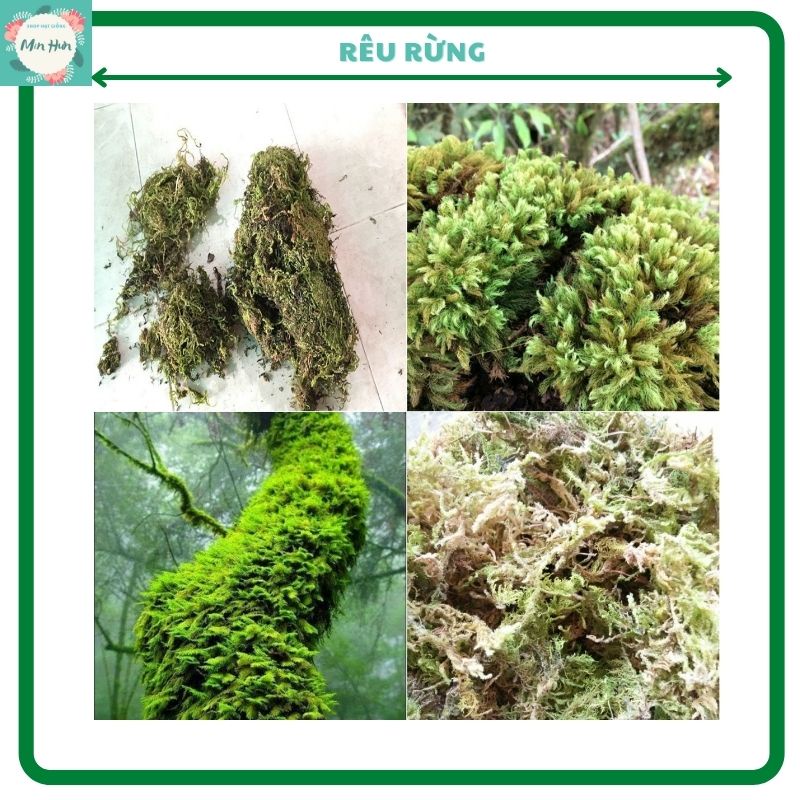 #Rêu rừng được lấy từ rừng về đã rửa xạch đất cát rồi phơi khô rất nhẹ kg. Dùng rải lớp nhẹ trên mặt chậu lan hoặc làm chất trồng cho cây hoa phong lan rất bền, lâu mục.