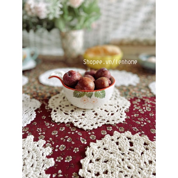 RG/Tấm lót cốc ren móc,đế lót ly tách,miếng đệm lót đa năng phong cách Âu trang trí nhà phòng bếp decor vintage lenhome