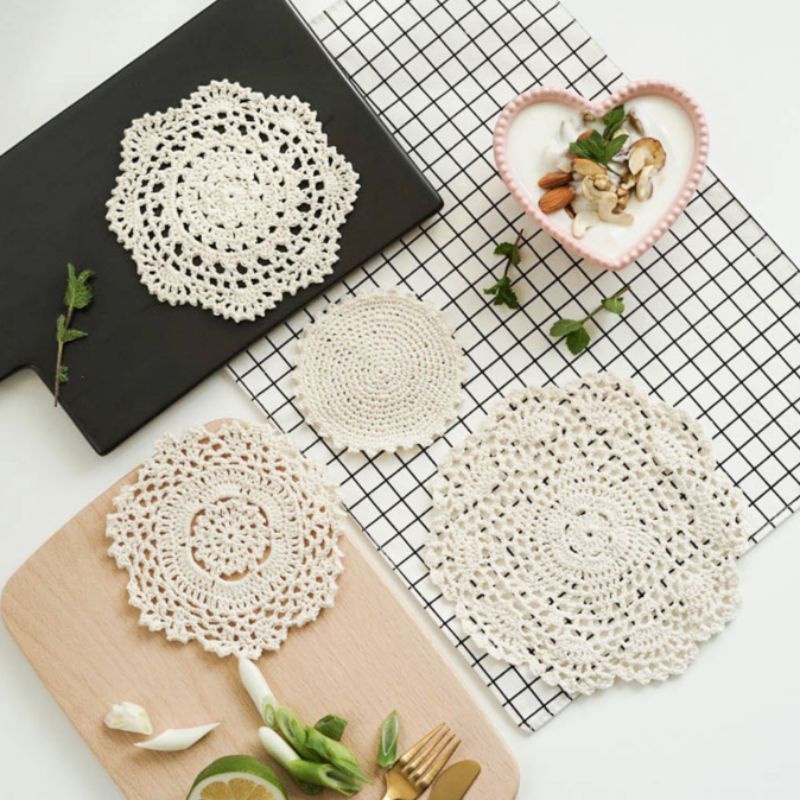Nhà cửa & Đời sống > Bộ đồ bàn ăn > Khay, tấm lót bàn ăn || RG/Tấm lót cốc ren móc,đế lót ly tách,miếng đệm lót đa năng phong cách Âu trang trí nhà phòng bếp decor vintage lenhomeCòn hàng