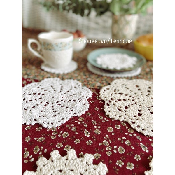 Giới thiệu RG/Tấm lót cốc ren móc,đế lót ly tách,miếng đệm lót đa năng phong cách Âu trang trí nhà phòng bếp decor vintage lenhome