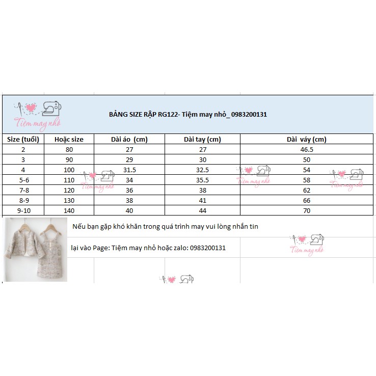 Sở thích & Sưu tầm > Dụng Cụ May Vá || RG122_Rập giấy may set áo khoác lửng+ váy bé gáiCòn hàng