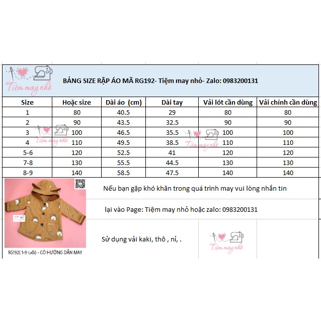 Giới thiệu RG192_Rập giấy may áo khoác trẻ em
