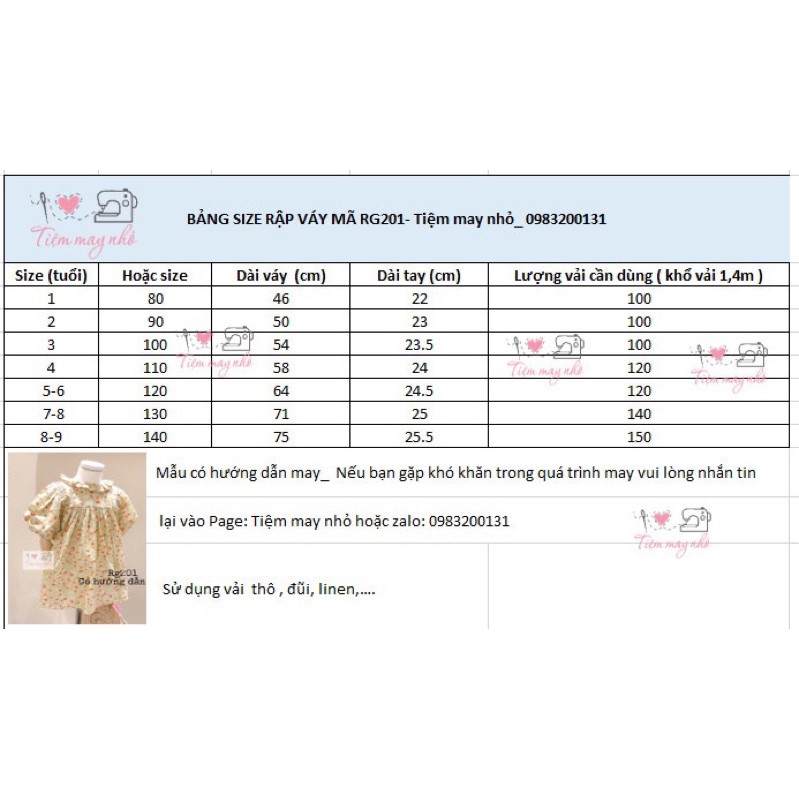 Giới thiệu RG201_Rập giấy may đầm tay phồng bé gái