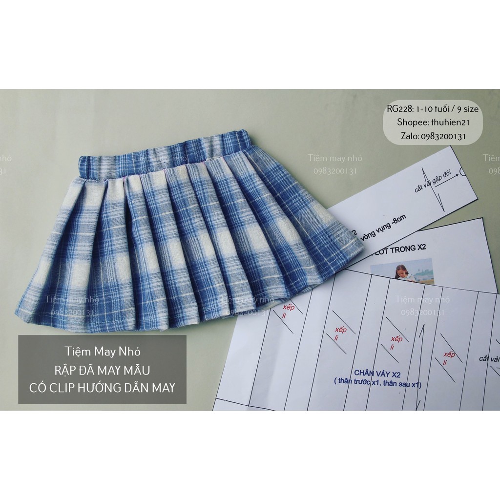 Giới thiệu RG228_Rập giấy may chân váy xếp li kèm quần trong
