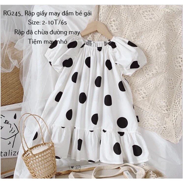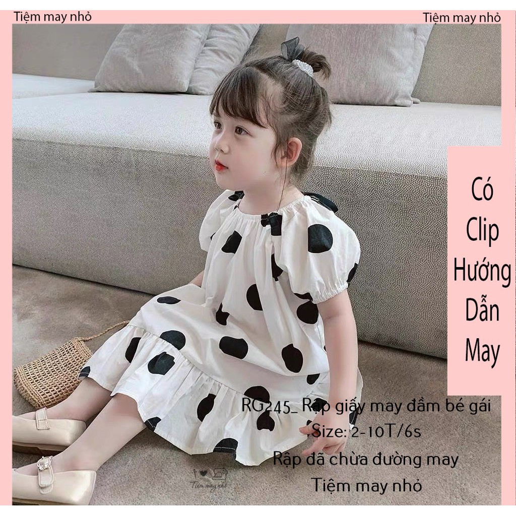 RG245_ Rập giấy may đầm tay raglan bé gái