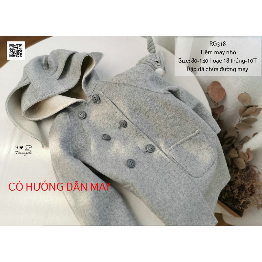 Giới thiệu RG318_Rập giấy may áo khoác dạ tai thỏ dáng dài cho bé