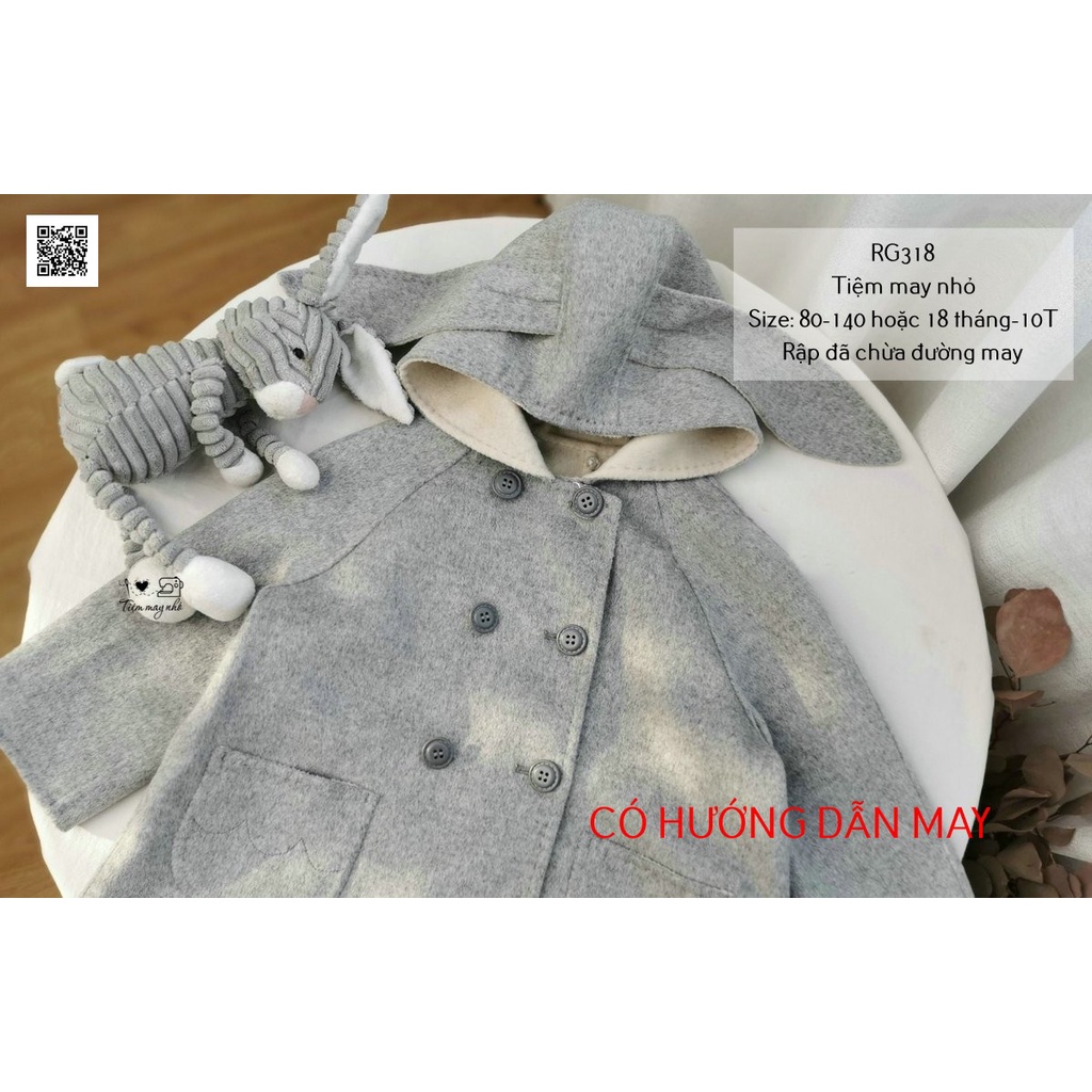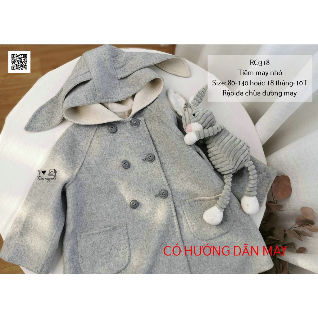 RG318_Rập giấy may áo khoác dạ tai thỏ dáng dài cho bé