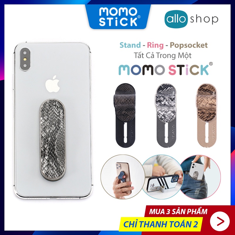 MOMOSTICK là một phụ kiện độc đáo đến từ Hàn Quốc không thể thiếu cho người dùng điện thoại ngày nay, hỗ trợ bạn sử dụng máy một cách an toàn hơn chống rơi rớt và giật điện thoại, mà còn thêm nhiều tính năng hữu ích khác như: Làm giá đỡ để bàn, nhẫn đeo chụp anh tự sướng dễ dàng và rất nhiều tính năng thú vị khác.---------------------------------------------