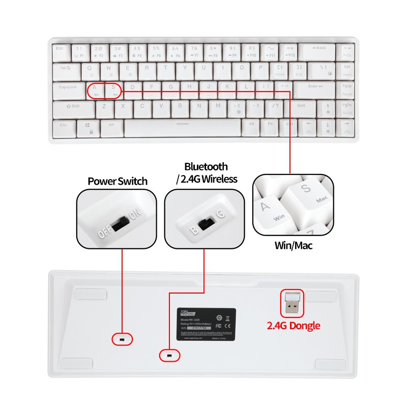 PHIÊN BẢN MỚI RK G68 RGB Sử Dụng Cho Máy Tính Để Bàn, Laptop, Máy Tính Bảng, Điện Thoại🔈 THÔNG SỐ BÀN PHÍM