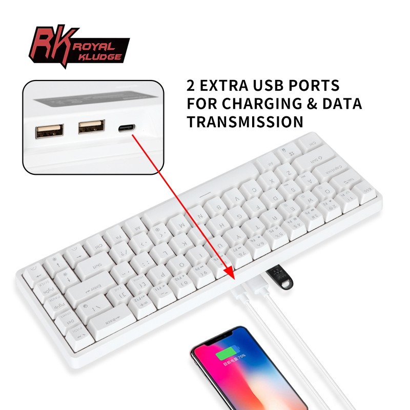 ✍️ Tác Dụng của 2 cổng Hub USB: RK G68 RGB được trang bị 2 cổng Hub USB dùng để sao lưu nhiều tiện ích hơn.