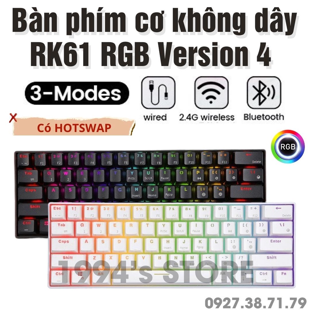 RK61 HOTSWAP - Bàn Phím Cơ Không Dây RK61 Version 4 - LED RGB Custom - Bluetooth 5.1 - Cáp Type C - Wireless 2.4G