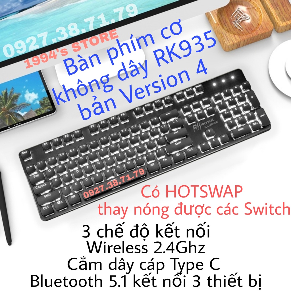 Máy tính & Laptop > Chuột & Bàn Phím > Bàn Phím Máy Tính || RK935 HOTSWAP - Bàn phím cơ không dây Dragon Shield bản Version 4 - Bluetooth 5.1 - Wireless - Cáp Type C - Kháng nướcCòn hàng
