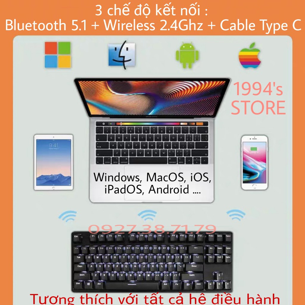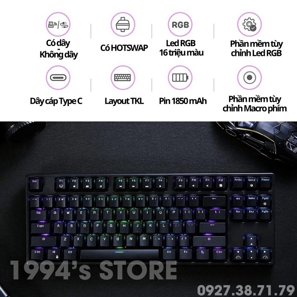 Giới thiệu RK987 RGB Version 4 HOTSWAP - Bàn Phím Cơ Không Dây Bluetooth 5.1 Kết nối 3 thiết bị - Wireless 2.4Ghz - Cáp Type C
