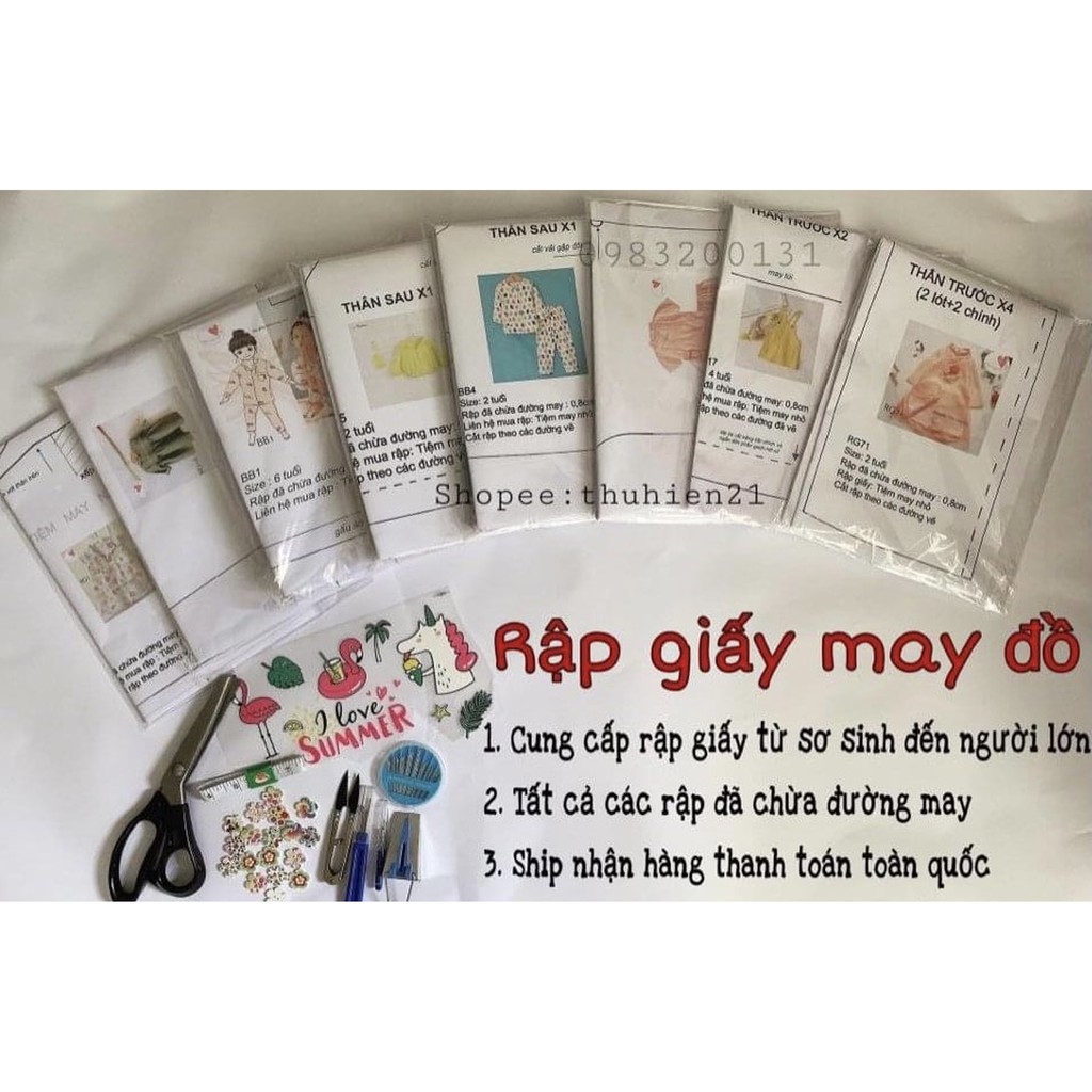 LƯU Ý : Rập giấy là bản vẽ trên trên giấy để mọi người tự may đồ chứ KHÔNG PHẢI QUẦN ÁO đã may nên mọi người cân nhắc trước khi mua ạChất liệu: GIẤY