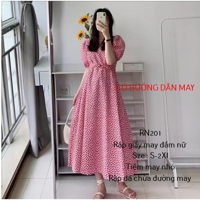 Giới thiệu RN201_rập giấy may đầm xòe thắt eo nữ