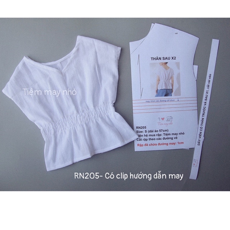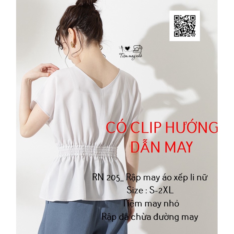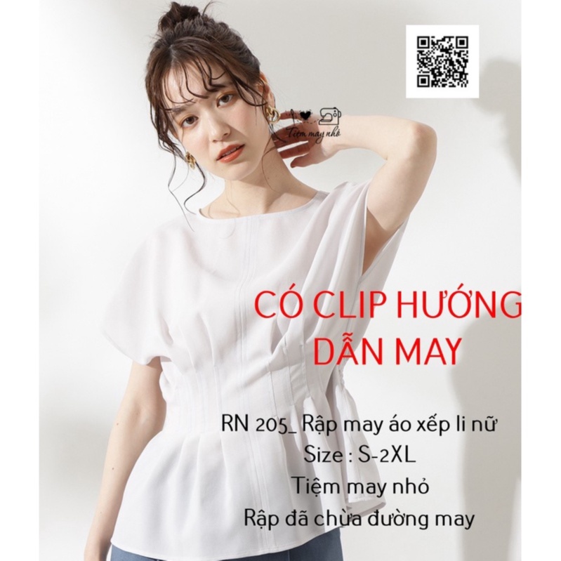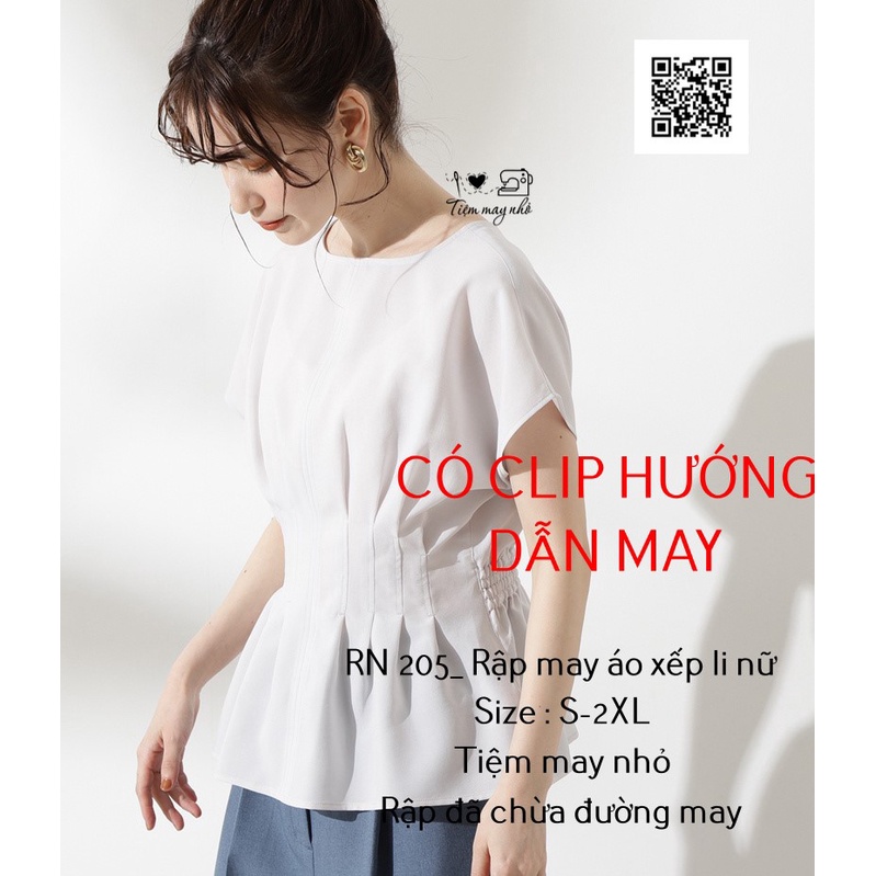 RN205_rập giấy may áo xếp li nữMẫu có hướng dẫn may, sử dụng vải voan, lụa, thô, tằm, đũi để may