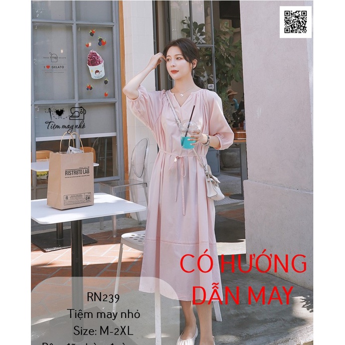 RN239_Rập giấy may đầm suông đuôi cá tay raglan nữMẫu có hướng dẫn may, sử dụng vải thô, linen, đũi để may
