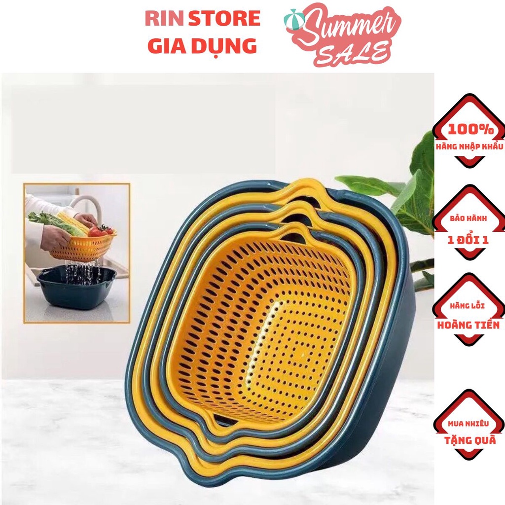 Bộ Rổ Nhựa 6 Món Rổ Ráo Nước,Rổ Rửa Rau Củ Quả Hai Lớp Ráo Nước Tiện Dụng Cho Nhà Bếp