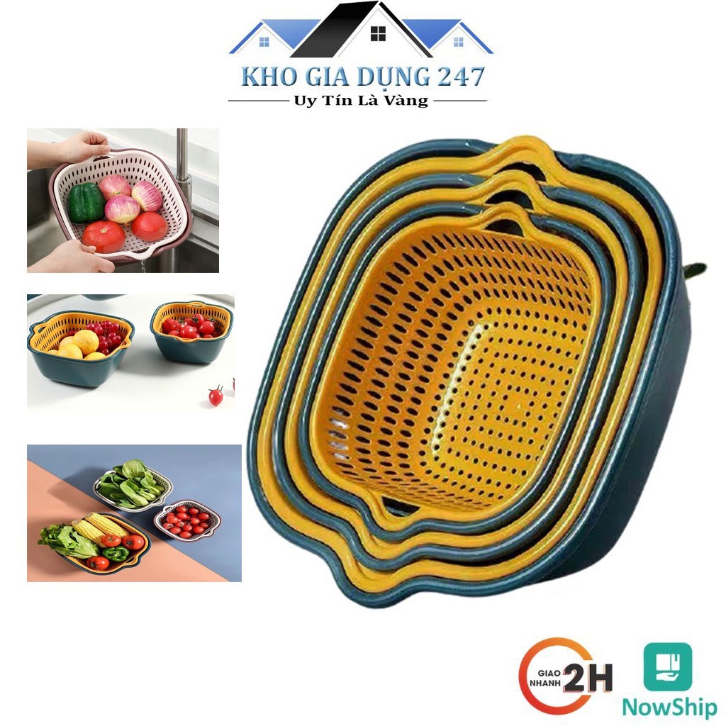 Kết hợp 2 loại rổ thành một đôi, một chiếc có công dụng để ráo, 1 chiếc để đựng nước, mang lại hiệu quả mỗi khi ngâm, rửa