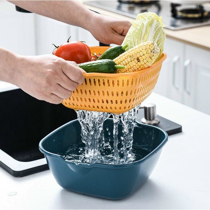 * ƯU điểm của Bộ Rổ 6 Món Kèm Chậu VUÔNG Đa Năng Chất Liệu Nhựa Cao Cấp Đựng Thực Phẩm Rau Củ Quả- Thiết kế hai chức năng trong một, đa năng, có thể rửa rau, trái cây, dùng làm khay đựng trái cây