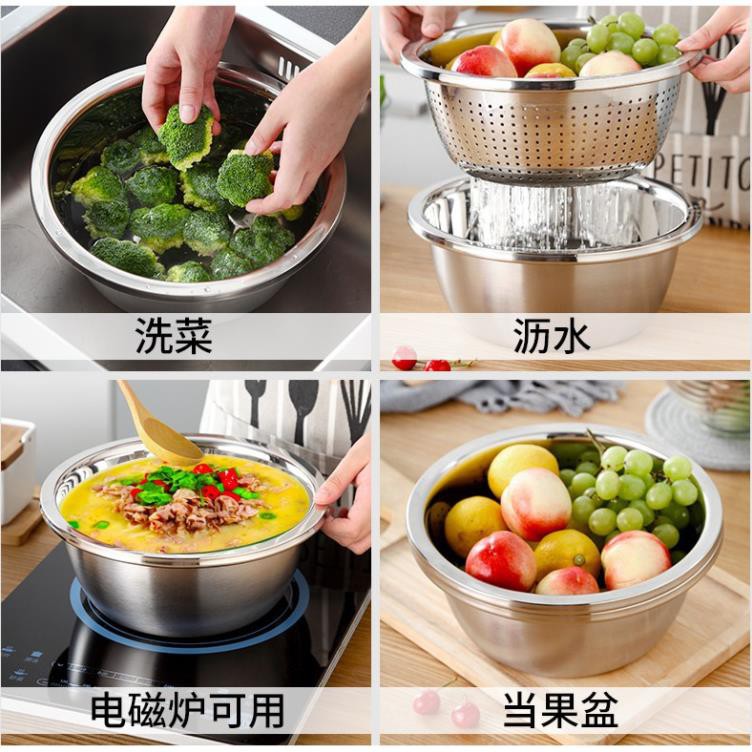 Bộ bao gồm : 01 Mặt nạo nhiều kiểu, 01 Rổ inox, 01 Chậu inox 100% cao cấp dày dặn