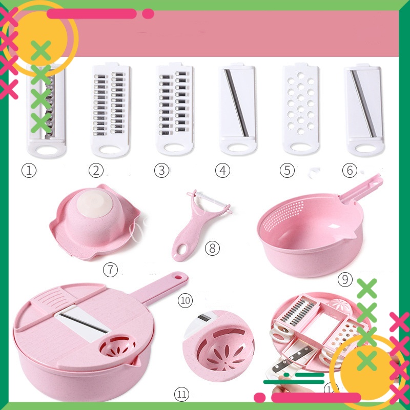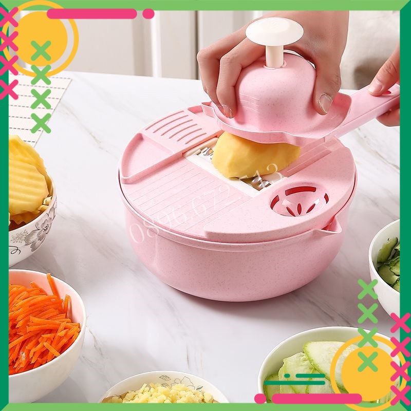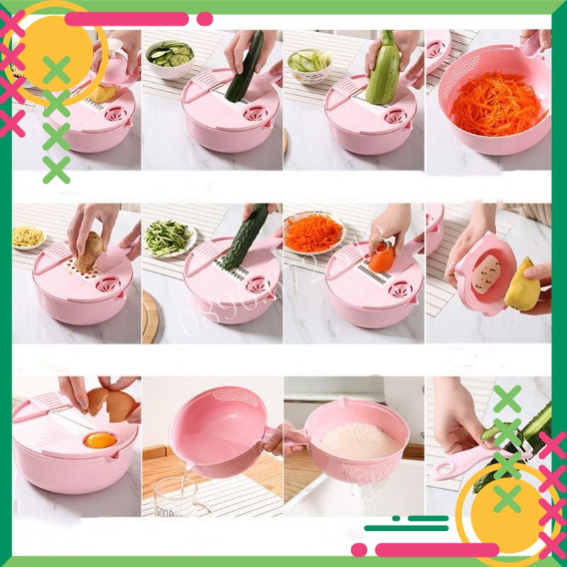 Rổ Bào Rau Củ Đa Năng Nạo Nhanh Gọn 12 Trong 1 Cực Kỳ Tiện Lợi Không Lo Đứt Tay