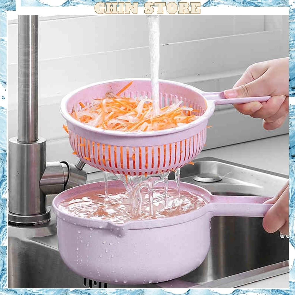 Nhà cửa & Đời sống > Dụng cụ nhà bếp > Bàn nạo, dụng cụ bào, cắt || Rổ bào rau củ đa năng nhà bếp có khay chứa cao cấp bằng nhựa lúa mạchCòn hàng