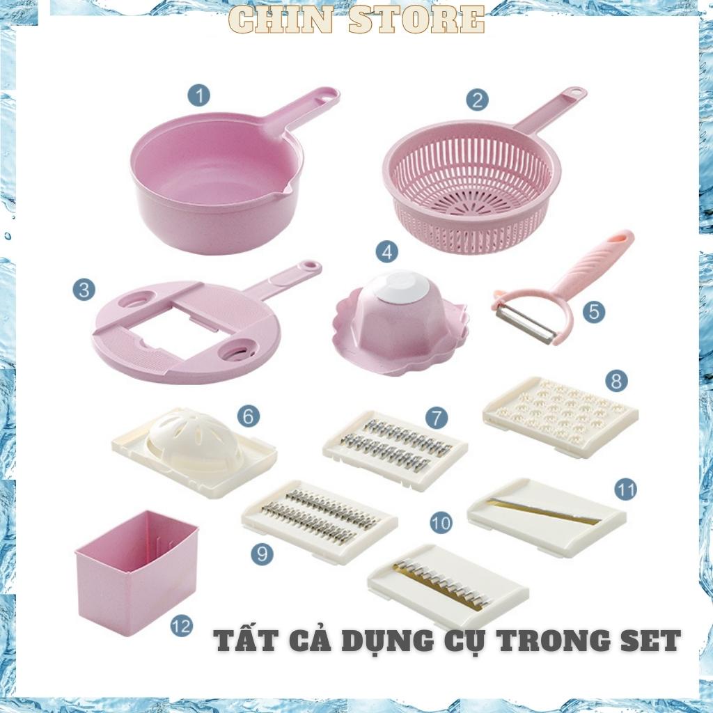 Bộ rổ bào rau củ đa năng nhà bếp có khay chứa cao cấp bằng nhựa lúa mạch-Dẫn đầu thị trường về đồ dùng nhà bếp tiện dụng, hôm nay nhà chin về mẫu bộ rổ bào, nạo rau củ đa năng 12 IN 1 , cực kì tiện dụng và lại mang xu hướng hiện đại cho các chị em chuyên nấu ăn nha.