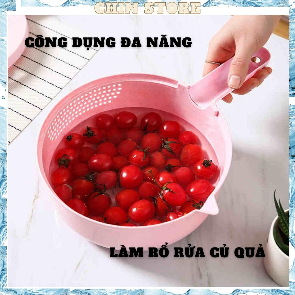 Rổ bào rau củ đa năng nhà bếp có khay chứa cao cấp bằng nhựa lúa mạch