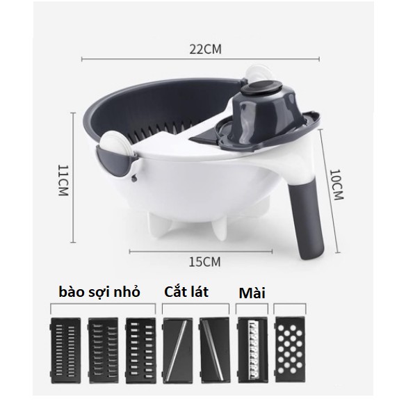 Rổ bào rau củ quả 9 trong 1 thông minh, dụng cụ chế biến thực phẩm, cắt thái bào sợi đa năng