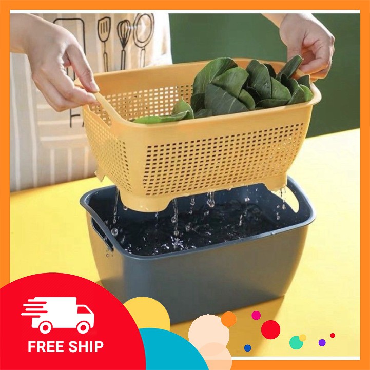 Nhà cửa & Đời sống > Dụng cụ chăm sóc nhà cửa > Chậu, xô & gáo nước || Bộ rổ chậu 2 lớp cao cấp không độc hại, không nổ nhựa GDTACòn hàng