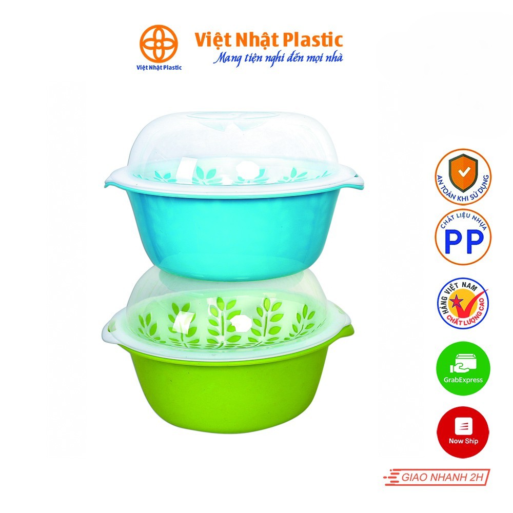Bộ rổ chậu có nắp đậy chống bụi 3 trong 1 chất liệu nhựa PP cao cấp Việt Nhật Plastic Bộ thau rổ ráo nước MS 3375