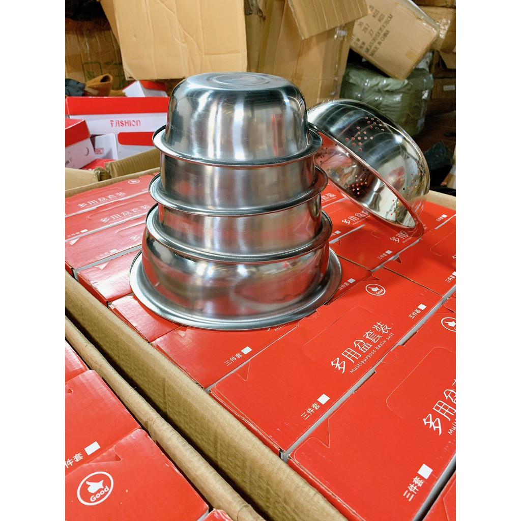 Nhà cửa & Đời sống > Dụng cụ chăm sóc nhà cửa > Chậu, xô & gáo nước || Bộ rổ chậu inox 18cm - 26cm cao cấp, đa năngCòn hàng