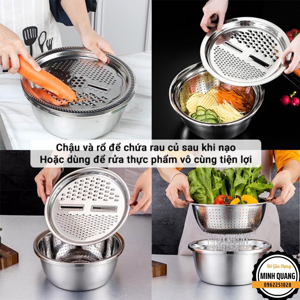 Bộ Rổ Chậu Kèm Nạo Củ Quả Đa Năng 3 in 1 Inox 304 Cao Cấp - Dụng Cụ Nạo Bào Củ Quả Tiện Lợi Nhà Bếp