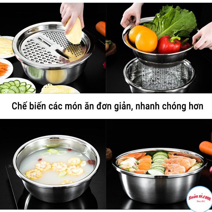 Bộ rổ, chậu kèm nạo rau củ quả inox đa năng 3in1 siêu tiện dụng cho nhà bếp