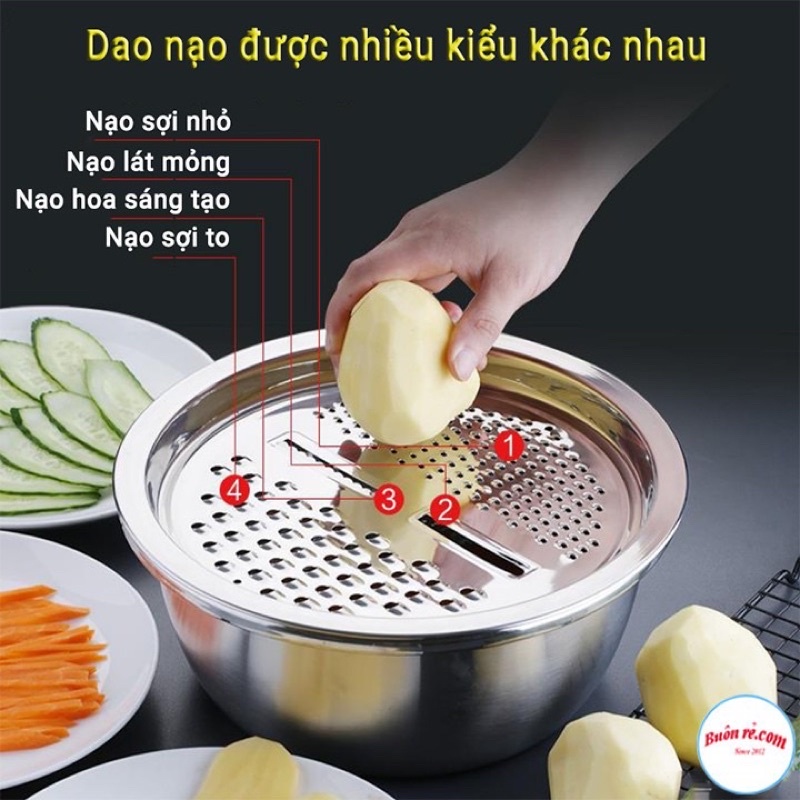 ✅ Bộ bao gồm : 1 Mặt nạo nhiều kiểu, 1 Rổ inox, 1 Chậu inox dày dặn