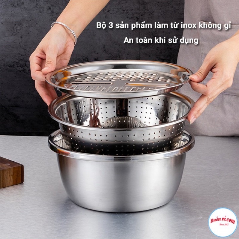 Nhà cửa & Đời sống > Dụng cụ nhà bếp > Bàn nạo, dụng cụ bào, cắt || Bộ rổ, chậu kèm nạo rau củ quả inox đa năng 3in1 cao cấp siêu tiện dụngCòn hàng