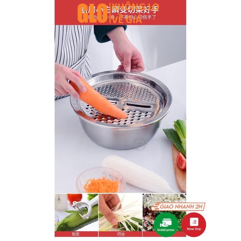 Bộ Rổ, Chậu Kèm Nạo Rau Củ Quả Inox Đa Năng 3in1
