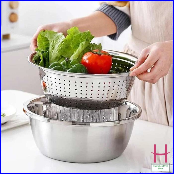 Nhà cửa & Đời sống > Dụng cụ chăm sóc nhà cửa > Chậu, xô & gáo nước || Bộ rổ, chậu kèm nạo rau củ quả inox đa năng 3in1 siêu tiện dụng { H }Còn hàng