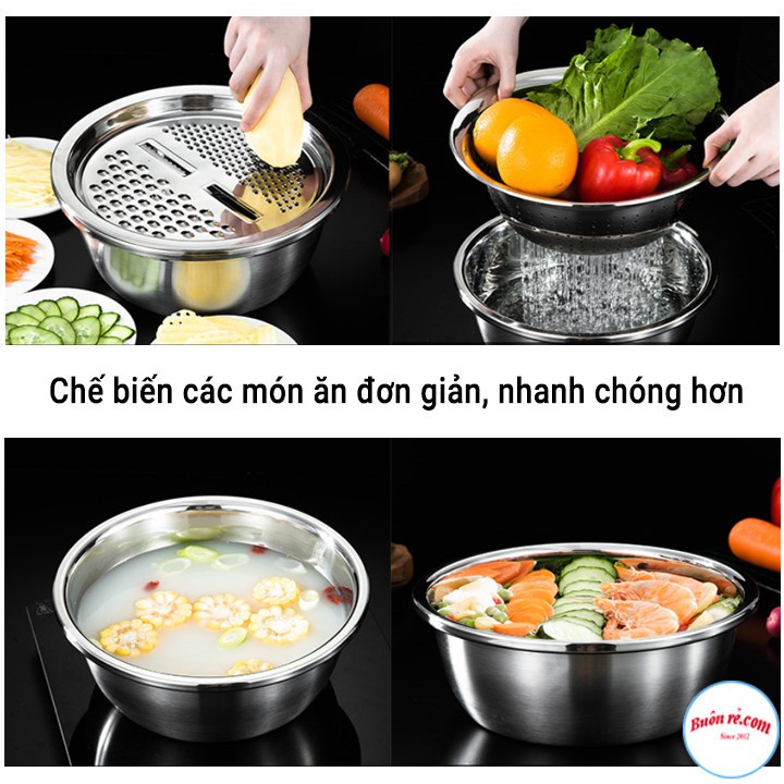 Bộ rổ, chậu kèm nạo rau củ quả inox đa năng 3in1 cao cấp siêu tiện dụng