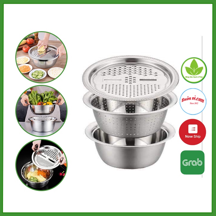 Nhà cửa & Đời sống > Dụng cụ nhà bếp > Bàn nạo, dụng cụ bào, cắt || Bộ rổ chậu kèm nạo rau củ quả inox đa năng 3in1 00993Còn hàng